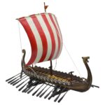 Tarihin efsanevi denizcilerinin ruhunu evinize taşıyın! El yapımı bu Viking gemisi modeli, özgün detayları ve yüksek kaliteli işçiliği ile göz dolduruyor. Kırmızı-beyaz şeritli yelkeni, ejderha başlı pruvası ve sıralı kürek detaylarıyla, mitolojik atmosferi yaşatan eşsiz bir koleksiyon parçasıdır.